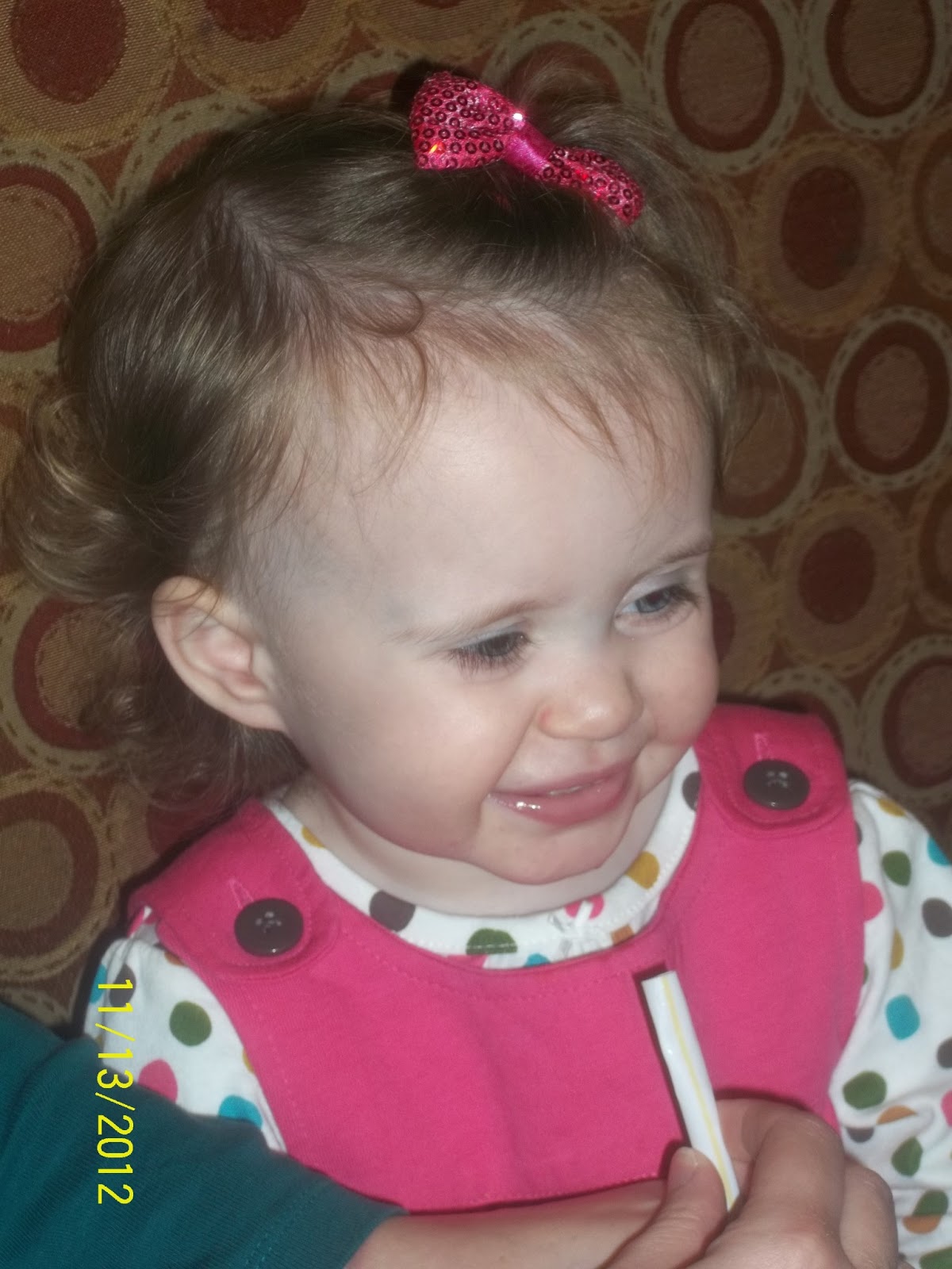 After we left Grannie's we went out to lunch and Aunt Beckie (my sister) was sharing her sprite with Zoe . Zoe's nose would crinkle up every time. It was so funny and cute!